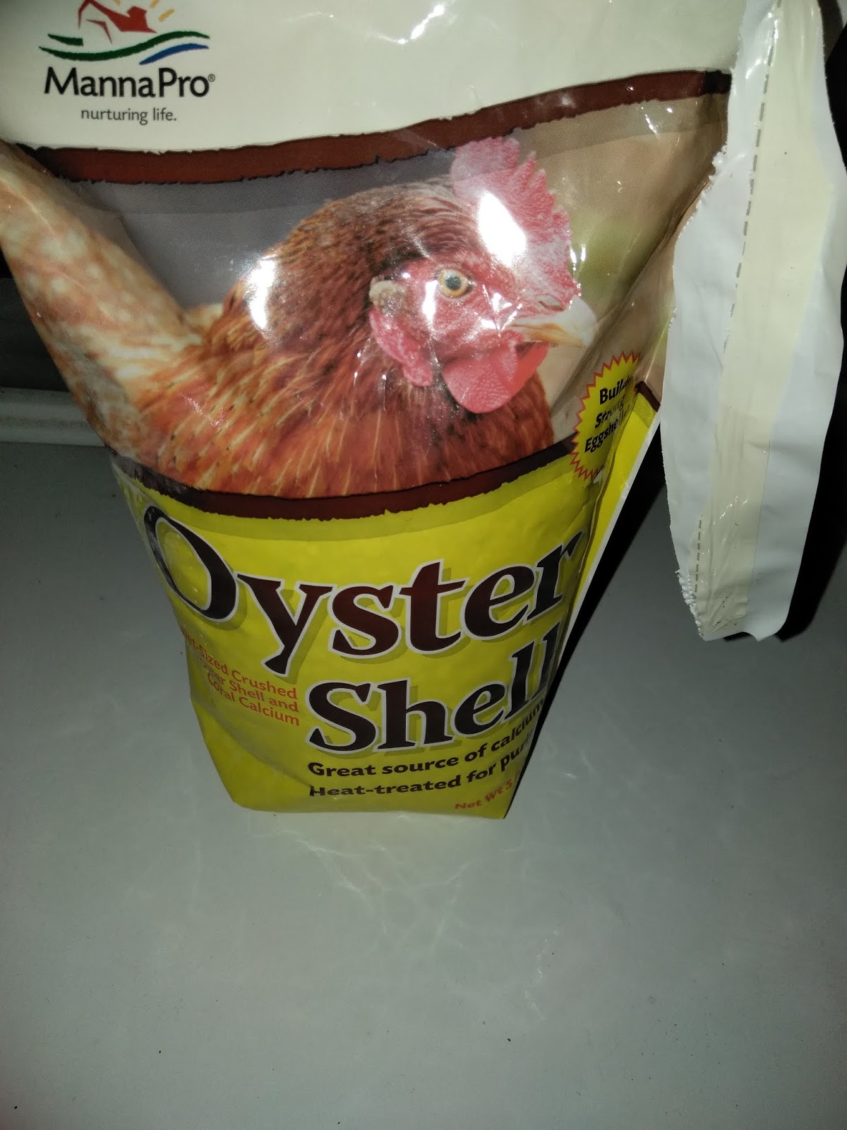 | A 5-pound bag of oyster shells waiting to serve as a source of grit for my nightcrawlers. |